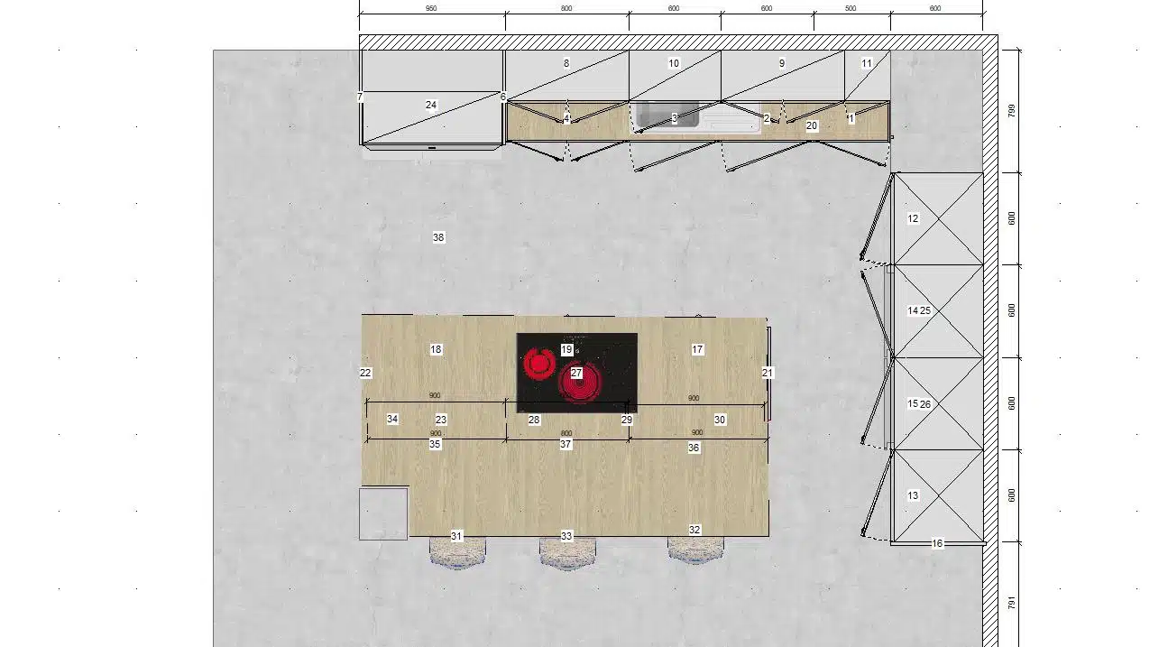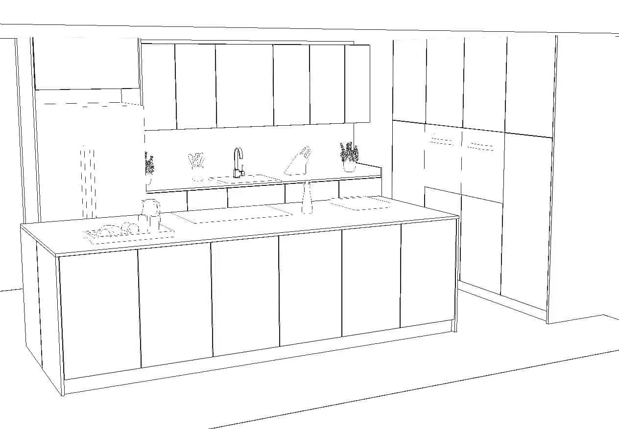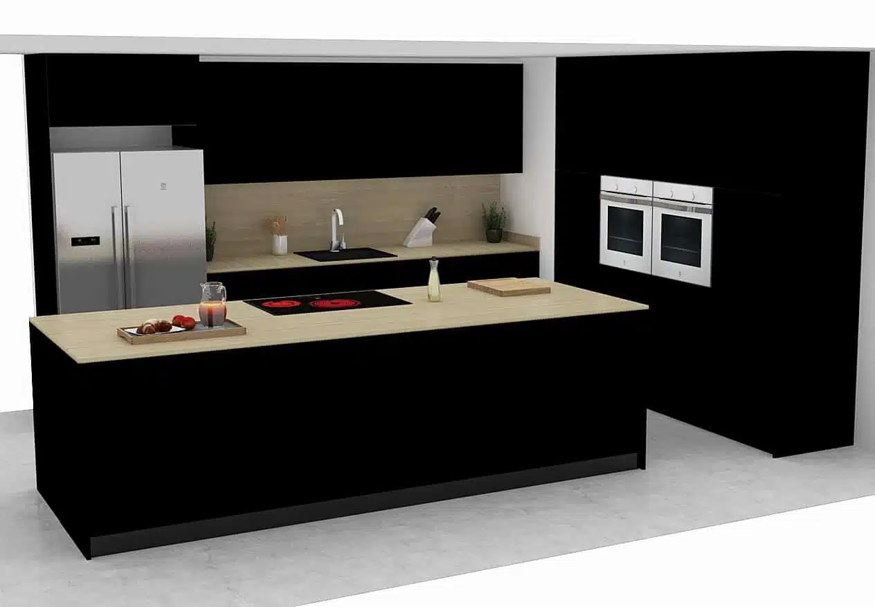 Por último, una isla central, compuesta por muebles bajos todo extraíbles, zona de trabajo y zona de cocción.